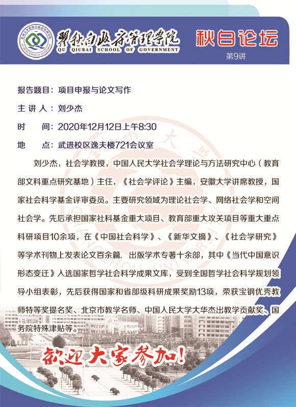 秋白论坛第9讲:项目申报与论文写作