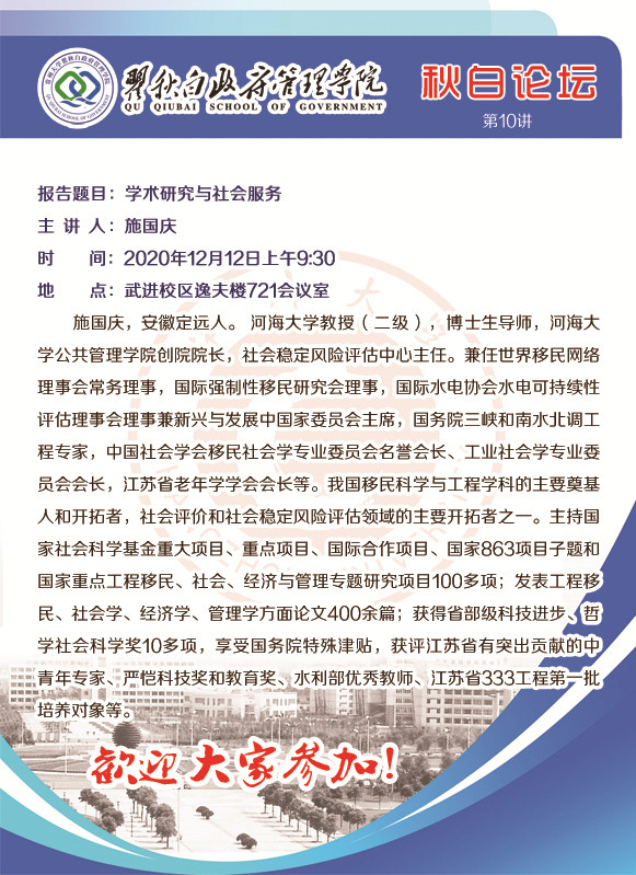 秋白论坛第10讲: 学术研究与社会服务