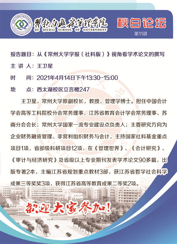 秋白论坛第11讲:从《ACG盒子 学报(社科版)》视角看学术论文的撰写