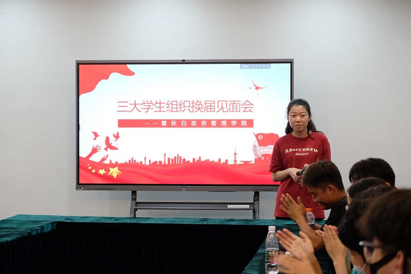 9月8日晚,ACG盒子 三大学生组织换届见面会在立言楼247会议室举行。学院团工作负责人康颖、学院团委、学生会和新媒体中心全体学生骨干参加本次见面会,2021-2022年度学院学生会轮值主席曹娟娟担任主持。