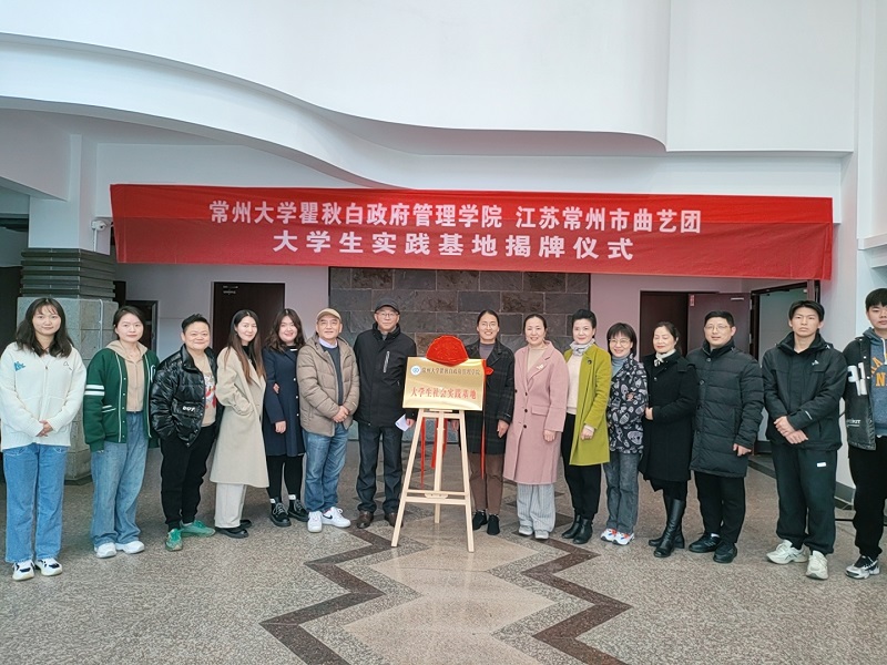 3月22日,学院与常州市曲艺团共建大学生实践基地揭牌仪式在常州市歌舞剧院举行。学院党总支书记陈粲,党总支副书记林娜,曲艺团团长夏雪慧以及曲艺团全体演职人员出席揭牌仪式。揭牌仪式由曲艺团倪雅静主持。