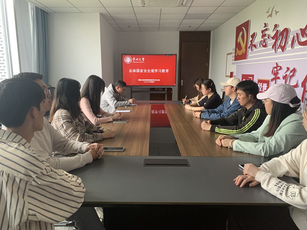 为全面深入学习贯彻习近平总书记关于总体国家安全观和国家安全的重要论述,切实增强学生党员国家安全意识,4月11日,学院学生党支部在立言楼239会议室开展总体国家安全观学习教育主题党日活动。支部党员参加学习并作交流发言。