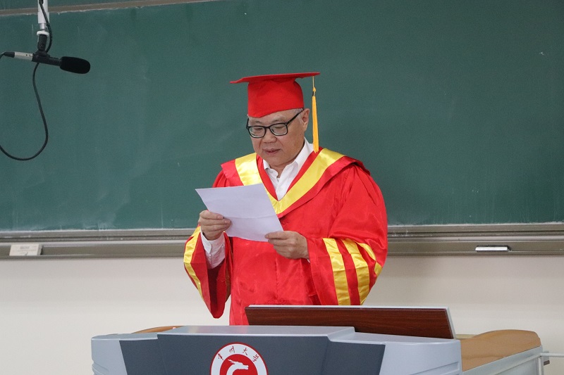 典礼在毕业纪念视频里的一幕幕回忆中拉开帷幕——忆往昔,看今朝。屏幕里青涩和懵懂的学弟学妹以及各位老师对毕业生们饱含真情的寄语,毕业生们感慨万千。全体起立奏唱国歌后,毕业典礼正式开始。