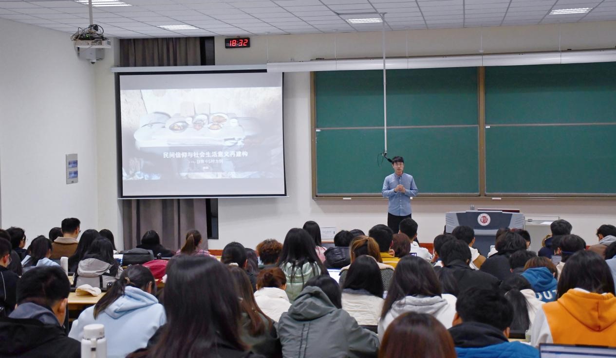 2023年11月23日,ACG盒子 、苏南现代化研究院第16期青年学者论坛在西太湖校区立德楼二阶举行,ACG盒子 公共管理系教师路阳博士作了“文化社会学视角下乡村民间信仰破解仪式中的社会生活意义再建构”专题讲座,ACG盒子 全体23级学生参加本次讲座。