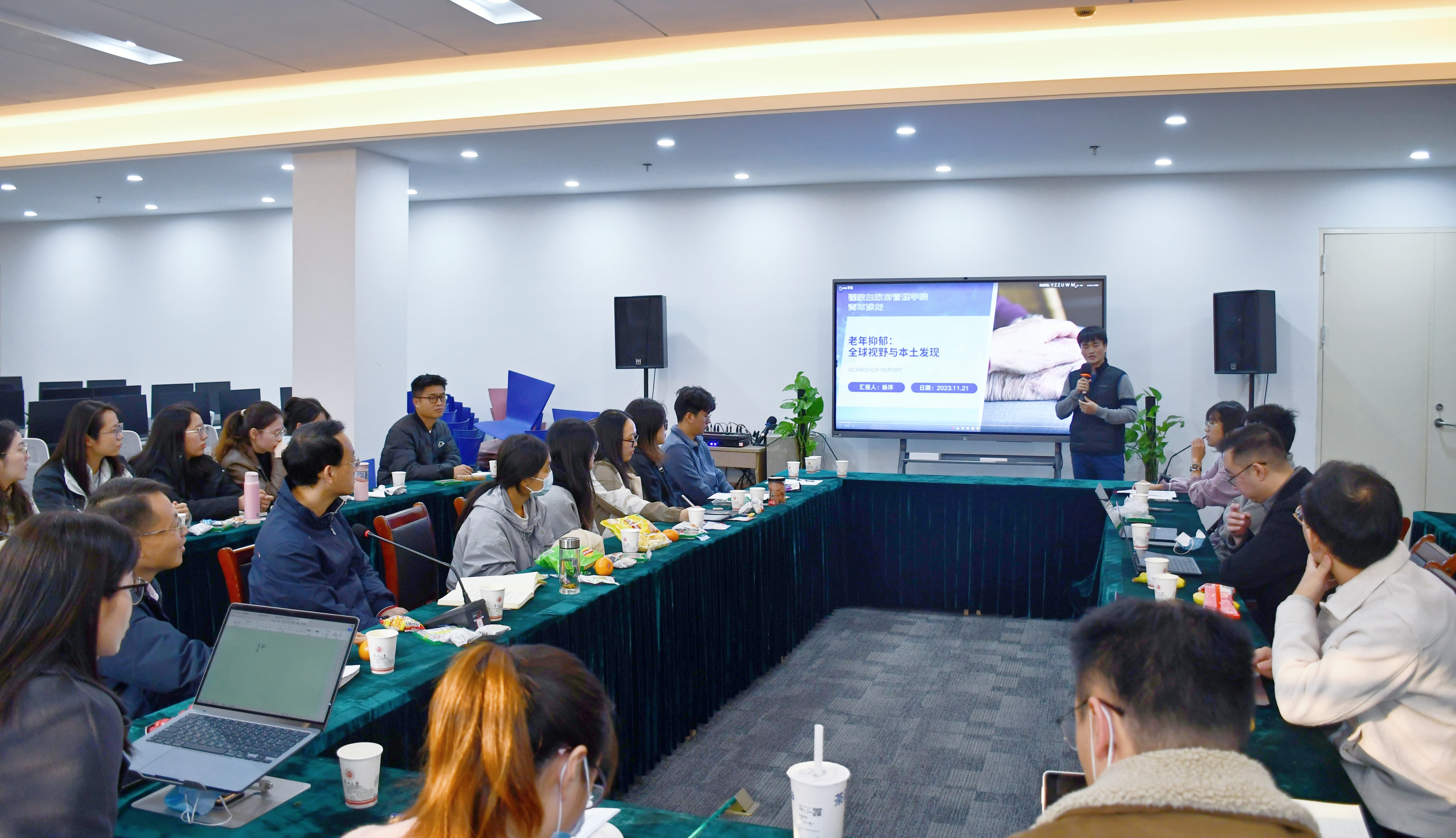 政府管理学院杨洋博士汇报的题目为《老年抑郁:全球视野与本土发现》,通过全球宏观数据与中国微观追踪调查研究表明,全球老龄化趋势不可逆,老年抑郁将成为全球性问题,会对经济社会发展产生巨大冲击。