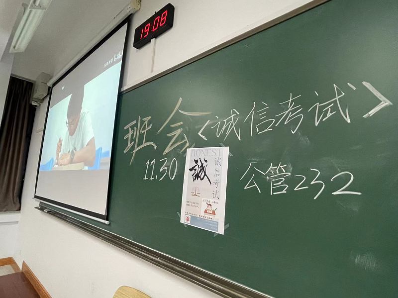 本次活动,各班级采取“微视频观看+问答交流”、问卷调查以及张贴海报的形式,内容丰富,形式多样,其警示教育作用显著。辅导员根据各班级活动开展情况进行总结和点评,并指出“诚信是知行合一,是对外的真诚与自己内心的自洽”。最后,各班班长组织同学签订诚信考试承诺书,增强同学们的诚信观。