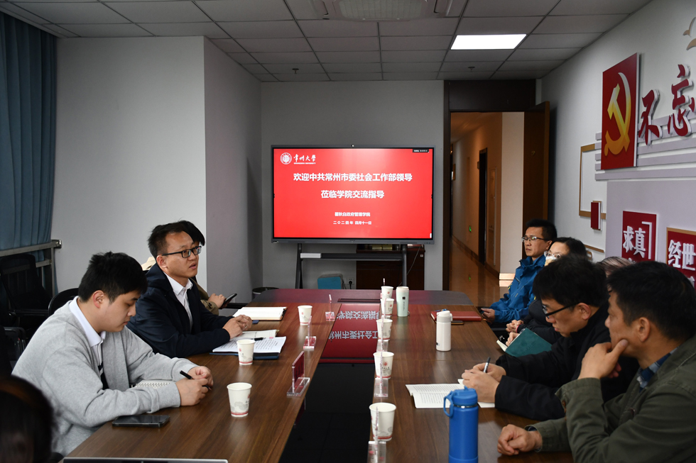 孙启明副部长介绍了中共常州市委社会工作部的成立时间、组织架构等基本情况。宋林飞院长对中共常州市委社会工作部领导的到来表示欢迎,并介绍了学院基本情况,重点对社会工作专业的师资队伍、人才培养和社会服务等事项做了陈述。