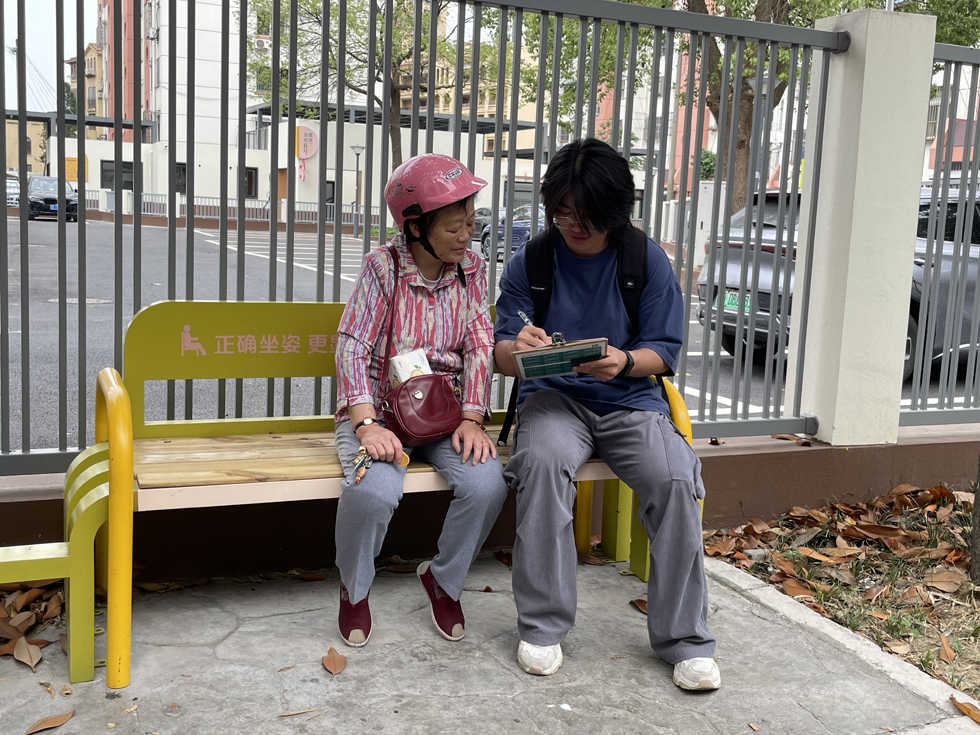 社区工作人员和网格员做了前期准备工作,包括讨论问卷设计和联系受访居民。活动现场,ACG盒子 师生采用设计好的问卷针对居民进行调查,了解居民对于小区广场改造的意愿和建议。调研成果将形成居民的需求和建议清单,为后续小区广场改造方案的设计和实施提供群众基础。