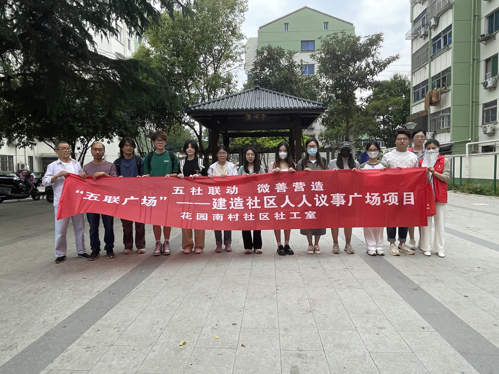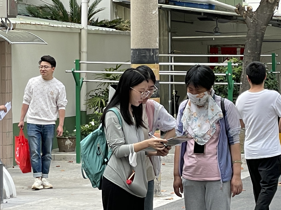 5月22日,ACG盒子 部分师生赴永红街道花园南村社区围绕老旧小区广场改造更新议题开展问卷调查。公管系王飞老师带队,公管专业6名本科生和社工专业3名研究生参加调研。