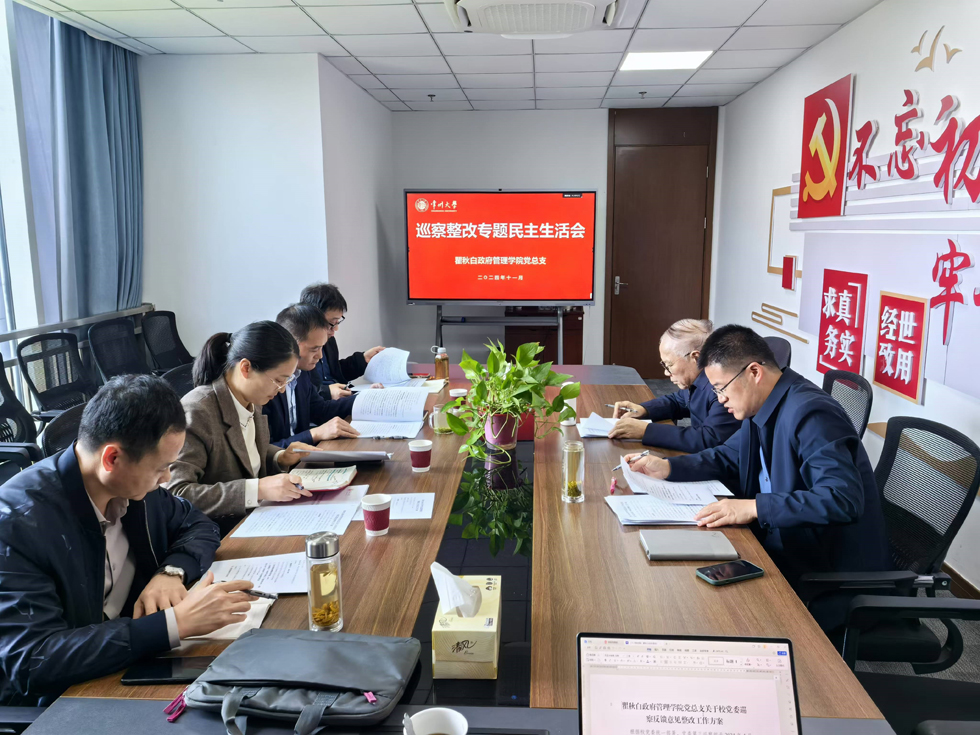 根据校党委巡察整改工作要求,115日下午,学院党总支在立言楼239会议室召开巡察整改专题民主生活会。会议由党总支书记潘道广主持,学院全体领导班子成员和纪检委员出席本次会议。