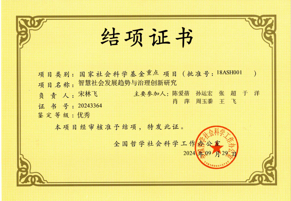 宋林飞院长的《智慧社会发展趋势与治理创新研究》项目,深入探讨马克思主义社会学关于智慧社会发展理论与智慧社会治理理论的创新。该项目不仅研究了国家人工智能发展战略与政策,还关注了新一代人工智能技术的进步与应用场景,为智慧城市、智慧政务、智慧养老、智慧治理等领域的发展提供了理论支持和实践指导。同时,项目还针对国家优化人工智能政策、推进社会治理现代化等方面提出了对策建议,具有较高的决策参考价值。
