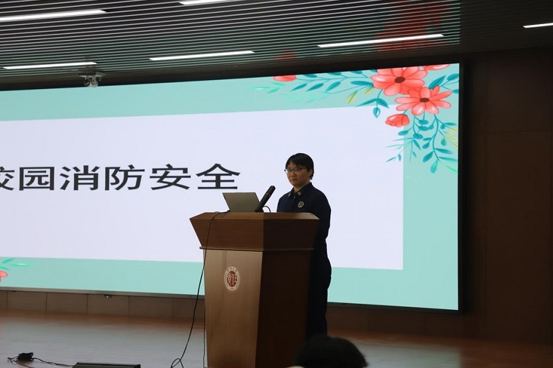 活动中,邵文晔教官结合真实案例,分别从火灾的特性、火灾的预防、火灾的应急处理、常用消防器材介绍、灭火器材使用实操5个方面为师生做了宣讲。随后,邵文晔教官现场教授了灭火器和应急逃生的知识,并指导师生进行了模拟逃生演练和灭火演练。演习开始后,参加人员分组依次进行了油盆灭火器灭火、模拟应急逃生两个项目,整个演练过程组织严密、安全有序。