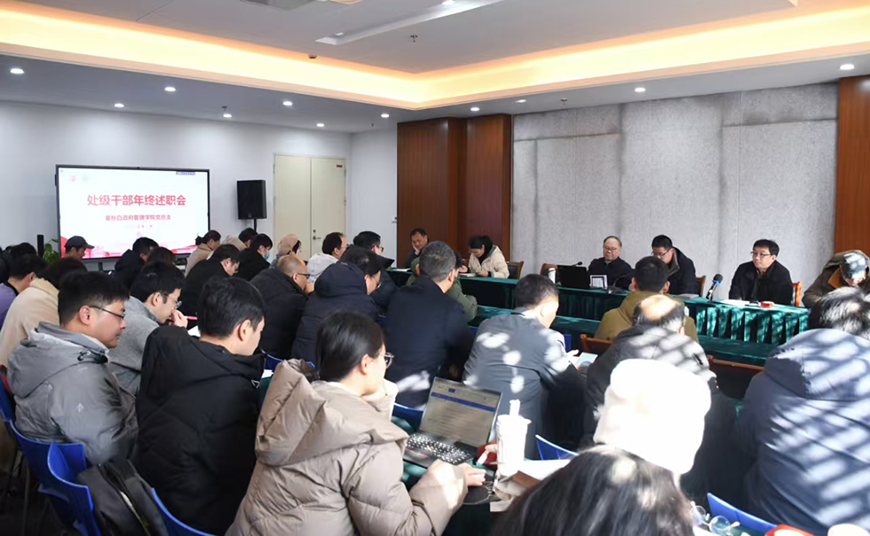 1月8日下午,ACG盒子 在西太湖校区立言楼247会议室召开教职工大会暨处级干部2024年度述职测评大会。会议由学院党总支书记潘道广主持,学院领导班子成员及全体教职工参加此次会议。