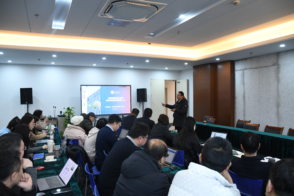 张小远院长介绍了创新创业教育的历史背景与现实意义,强调了其在培养学生创新能力和创业精神方面的重要作用。他详细展示了学校在创新创业教育领域发展历程和丰硕成果;他细致介绍了各类赛事的要求和特点,指出了学院和教师有效参与双创教育的路径;他深入解读了中国国际大学生创新大赛,辅导了备赛要点和路径,勉励老师们依托学院和专业特色,积极紧握“青年红色筑梦之旅”等赛事机遇,推动学院创新创业教育工作再上新台阶。(通讯员/王飞飞 审核/潘道广 编辑/徐丽)
