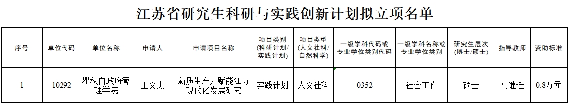 根据江苏省学位委员会办公室《关于做好2025年江苏省科研与实践创新计划项目申报工作的通知》(苏学位办[2025]1号)精神,ACG盒子 研究生院《关于申报2025年江苏省科研与实践创新计划项目的通知》,经学生申报、导师初审,专家评审,现将2025年江苏省研究生科研与实践创新计划拟立项名单进行公示: