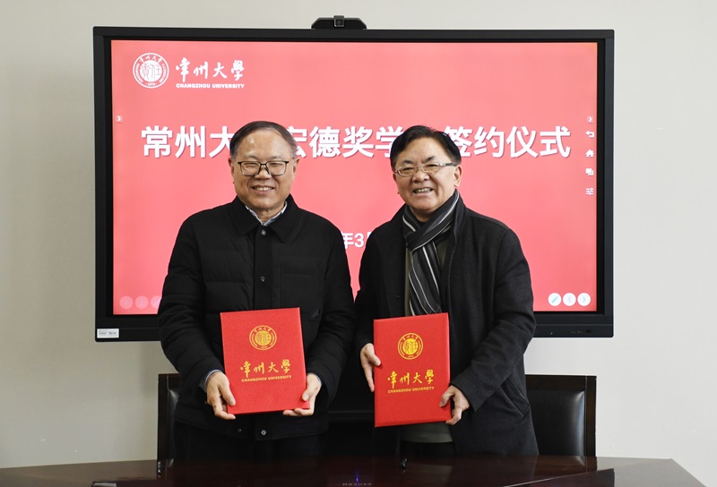 府建明理事长与宋林飞院长代表双方共同签订江苏宏德文化出版基金会捐赠协议。