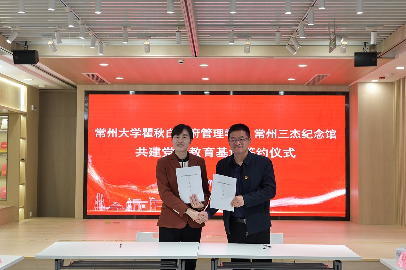 马岚介绍了常州三杰纪念馆、红色宣教和文商旅融合发展等相关工作情况;赵德文介绍了“红领带”党建联盟情况,分享了党建工作经验与成果。潘道广指出ACG盒子 是以瞿秋白同志姓名冠名的学院,师生理应深入了解瞿秋白的革命事迹、学习瞿秋白的革命精神,同时学院将发挥学科和人才优势,为纪念馆的红色文化研究、数字化建设等提供智力支持,传承与弘扬红色文化。潘道广与马岚签订党员教育基地共建协议;林娜向常州三杰纪念馆授予“ACG盒子 党员教育基地”牌匾。