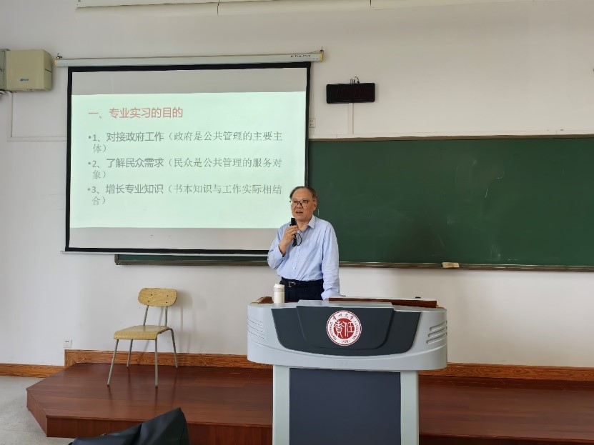 公共管理系主任李明随后发言。他结合公共管理学科特点与人才培养方案,一方面向同学们介绍了专业实践的时间、机构及主要内容;另一方面,强调了出行安全、实习纪律等,并鼓励学生在实习中积极积累经验、锻炼能力,并以此为契机持续提升未来职业胜任力。(通讯员/路阳 审核/翟进 编辑/徐丽)