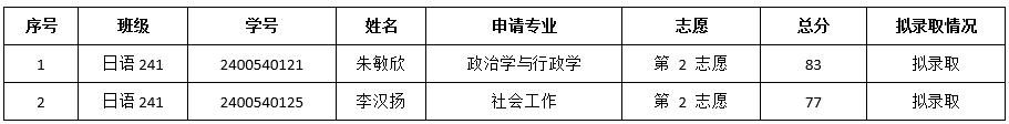 根据教务处“关于做好2025-2026-1学期本科学生转专业工作的通知”要求,学院于2025年7月4日对申请转入学院相关专业的学生进行了考核,经专业面试、笔试,以及院转专业考核领导小组审核,现将考核总评成绩及拟录取名单公布如下: