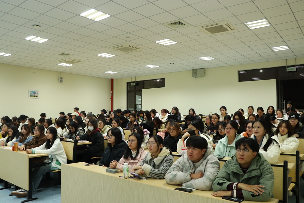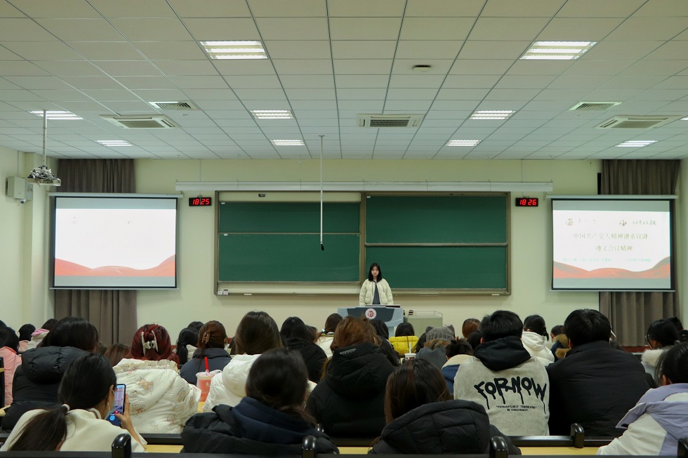 李霆婷围绕遵义会议的历史背景、过程与决议、历史地位及其深远的精神内涵四大方面系统展开。她结合丰富史料,生动阐释了遵义会议在极端困难条件下坚持实事求是、勇于自我革命的关键特质;同时紧扣当前青年学生在学习与成长中可能遇到的困惑与挑战,就如何将“独立自主”精神融入个人成长、将“团结统一”理念运用于集体协作,给出了具体的思考方向,引导同学们在历史与现实的对照中深入理解遵义会议精神的时代价值。